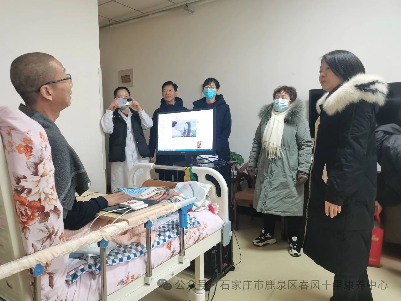 在新春佳節來臨之際鹿泉區醫保局領導率相關科室和保險公司、長護險定點機構負責人在寒冬臘月冒雪到春風十里康養中心,慰問看望長護險機構在養人員,與在養人員促膝談心詳細詢問身體康復及醫療護理照料情況,并把慰問品送到了床頭,暖暖的祝福語使在養老人流露出喜悅的表情。醫保局領導對春風十里康養中心醫療護理服務工作給了充分肯定。