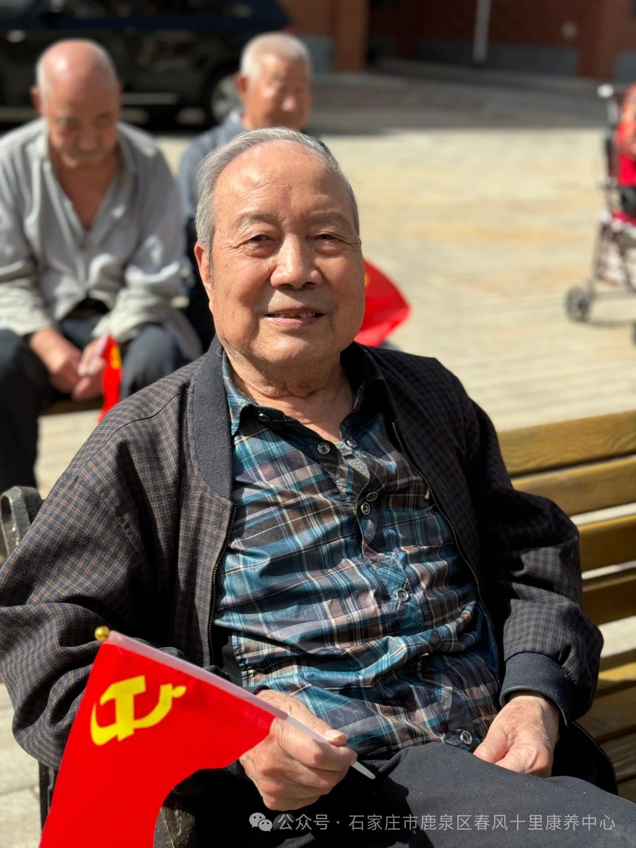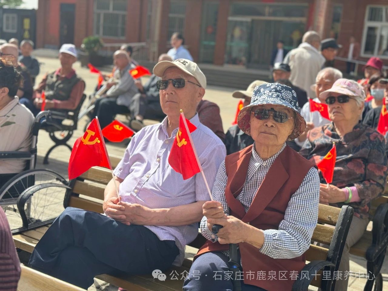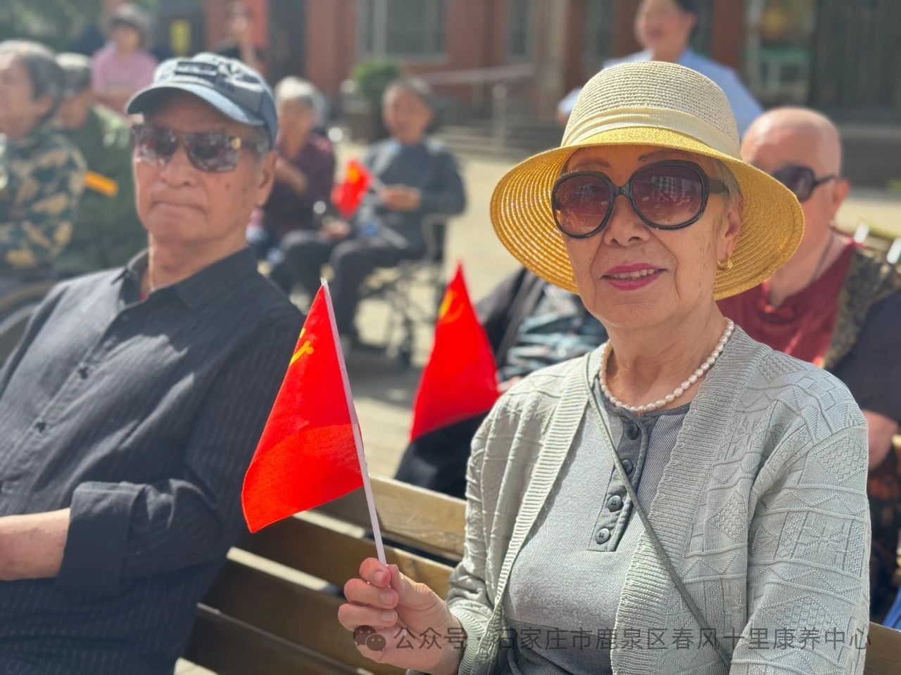 ↓老人們揮動彩旗齊聲高歌《愛的奉獻》