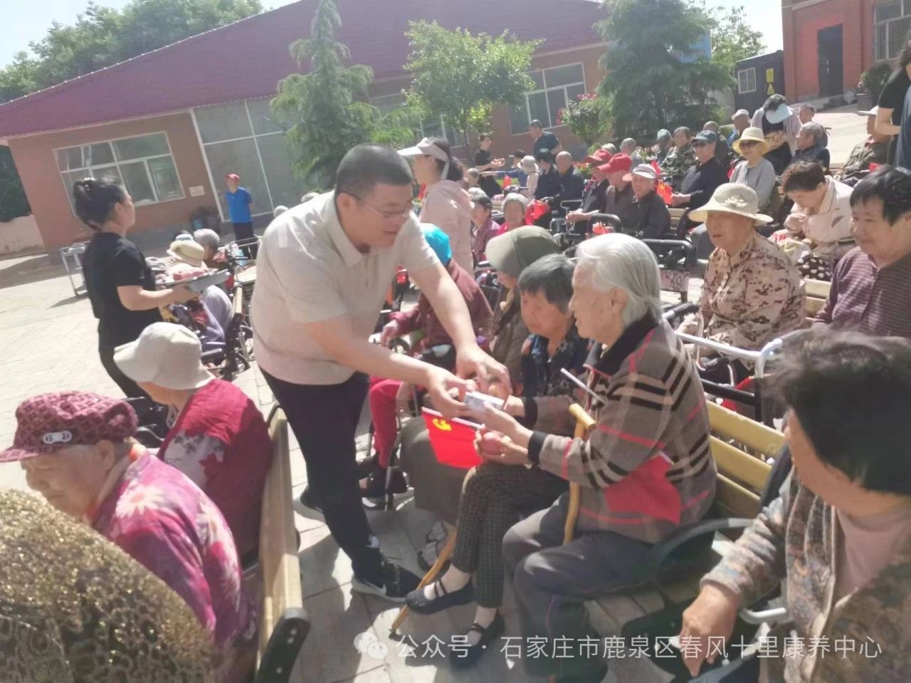 ↓中心領導為老人發(fā)放禮品