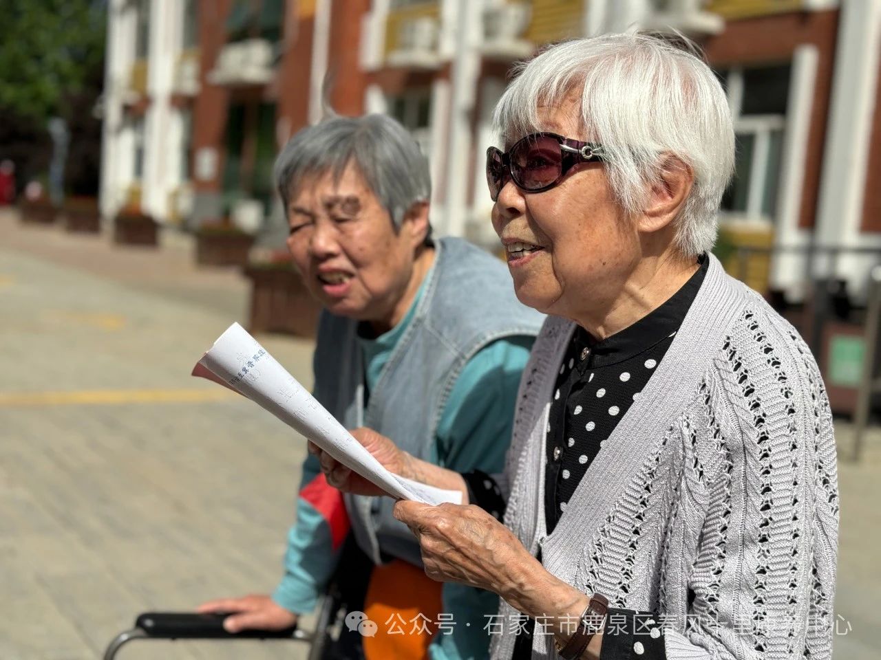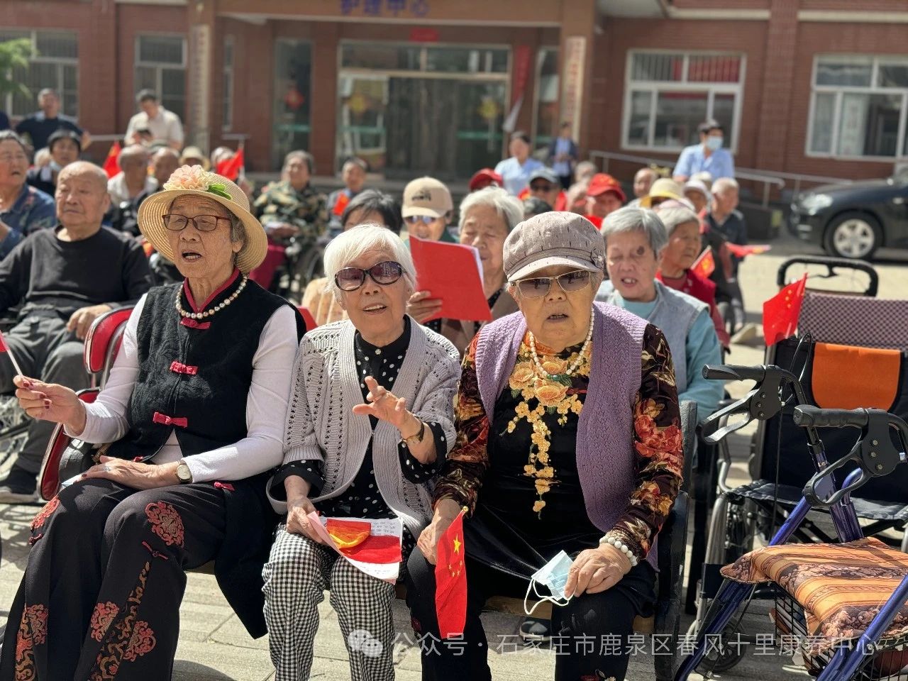 ↓在養(yǎng)老人演唱歌曲《春天里》《小白楊》