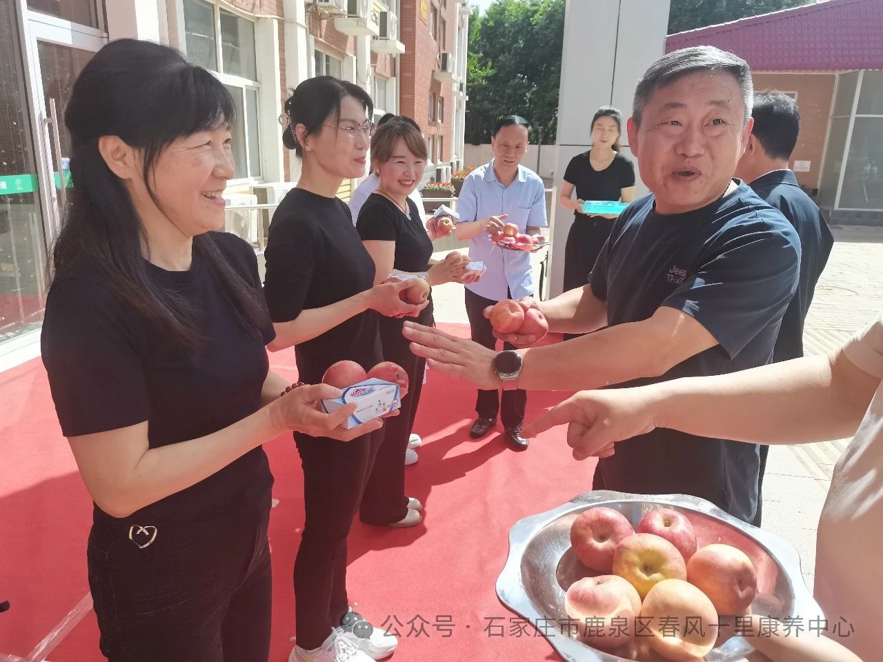 ↓中心領導為員工發(fā)放禮品