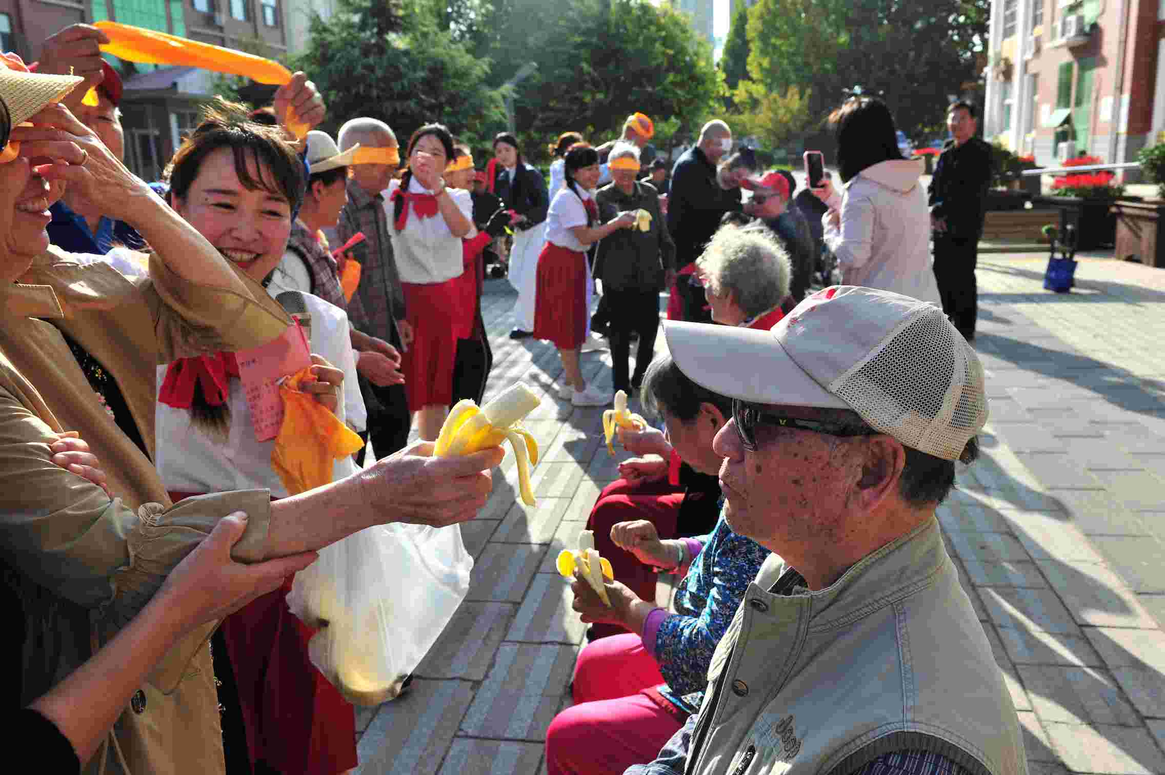 在歡聲笑語中,游戲《蒙眼喂香蕉》《套圈》成為全場焦點,老年朋友其樂融融,笑聲一片。同時,老兵合唱團在這重陽節之際也登臺表演精彩節目。老年朋友手持紅扇子,腰纏大紅綢歡快的扭起秧歌,給節目送上了高潮,活動在一片歡歌笑語中落下帷幕。