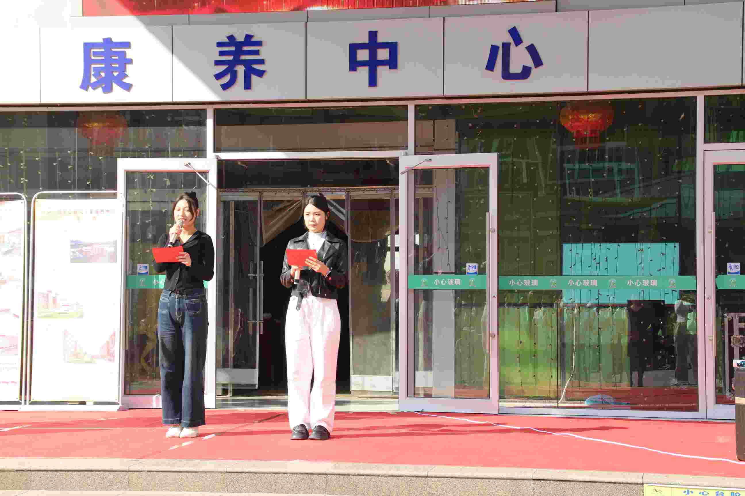 隨著《九月九的酒》的悠揚旋律響起,一場溫馨的大合唱拉開序幕。齊躍亭和聶養軍叔叔登臺書寫“春風十里親情滿 九九重陽歲月甜”,兩句祝福語送給在場所有老年朋友。