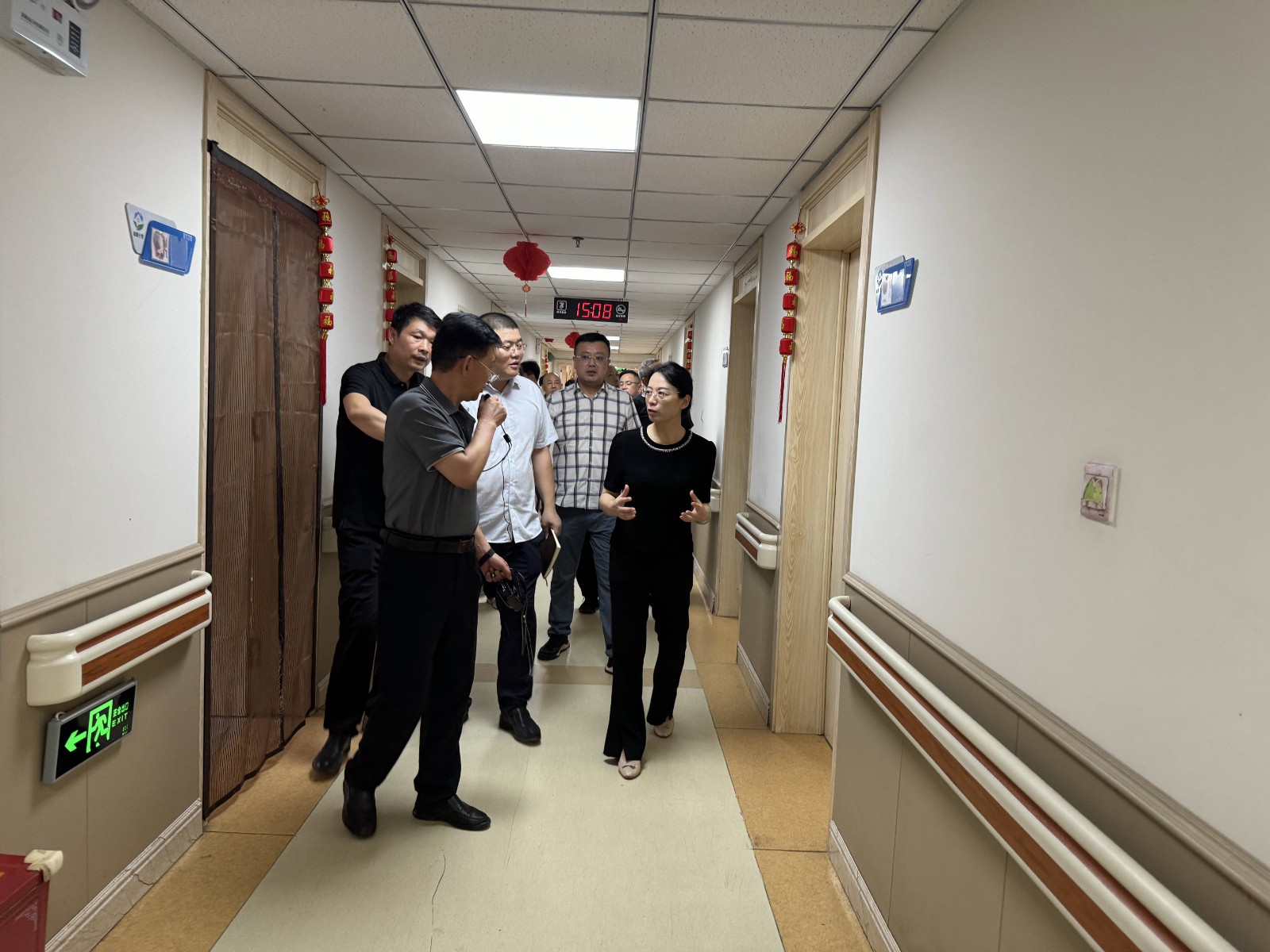 首先聽取了春風十里黨支部書記對康養中心老人居住環境、基礎設施、醫養結合、黨建示范等內容的詳細介紹。
